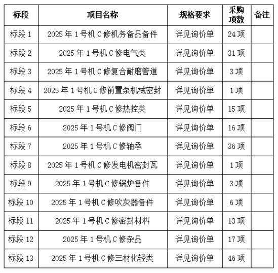 中電建(崇信)發(fā)電有限公司2025年1號(hào)機(jī)C修設(shè)備物資采購(gòu)公告 | ||||